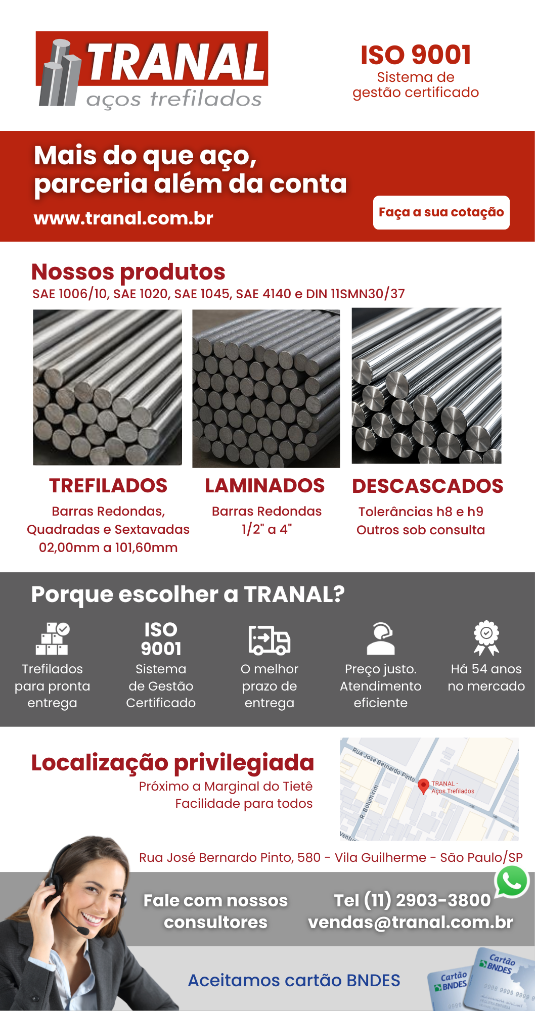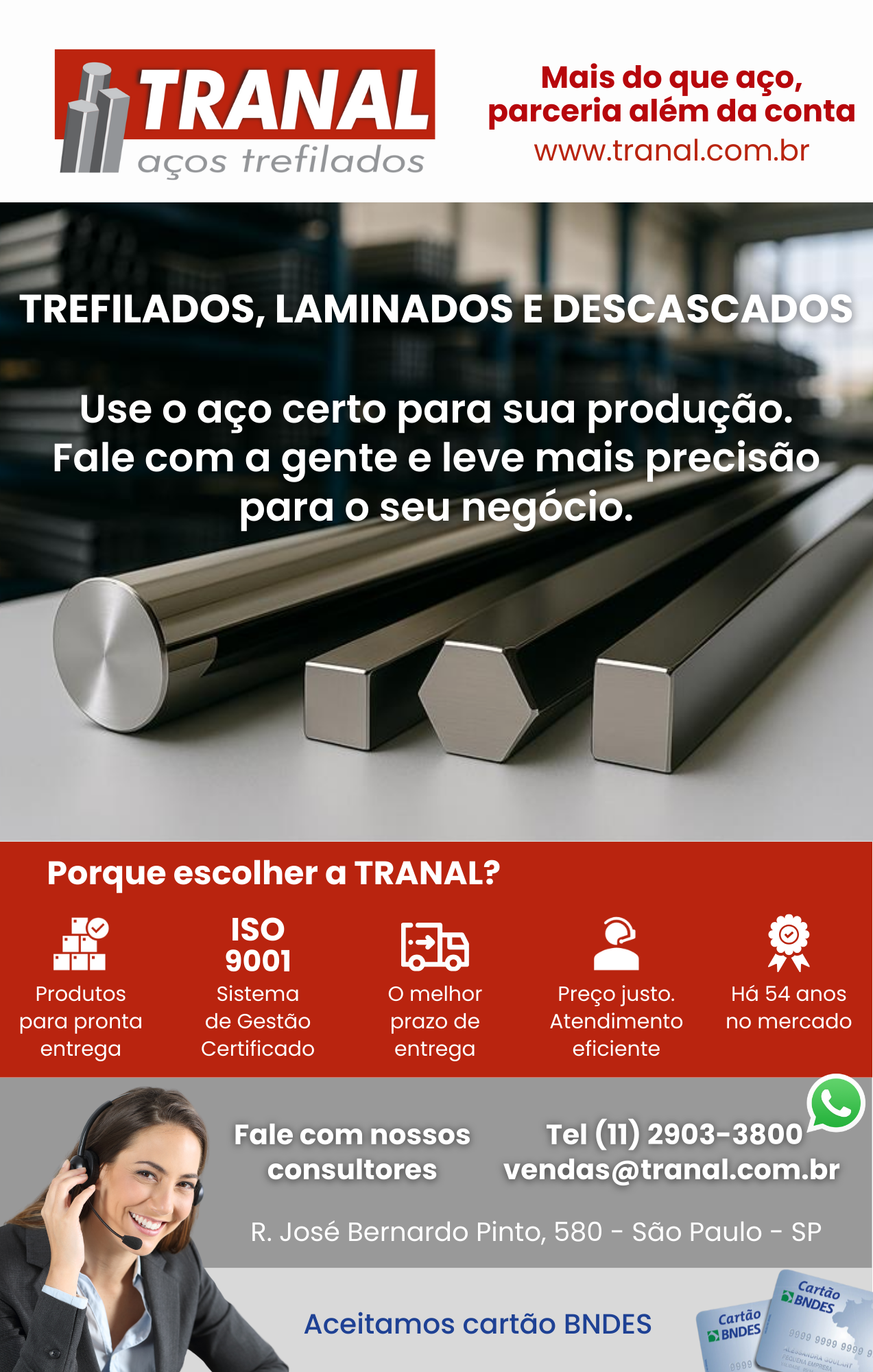 Optar pela TRANAL significa ter ao lado um parceiro com mais de cinco décadas de experiência e credibilidade reconhecida no mercado. Com um sistema de gestão certificado pela ISO 9001:2015, a empresa atende à indústria mecânica oferecendo competitividade, suporte especializado e rigor na execução das especificações de cada cliente