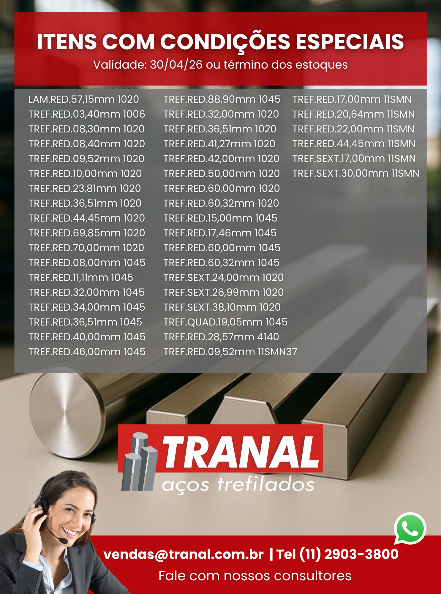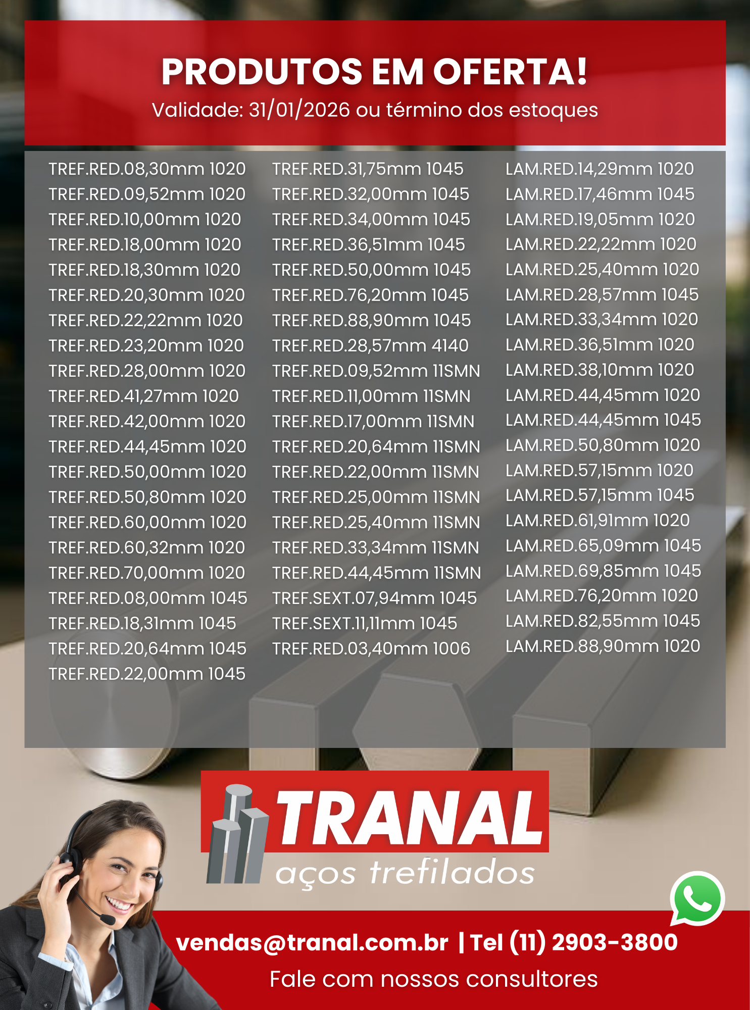 A TRANAL oferece um amplo estoque com a maior variedade de bitolas para pronta entrega.