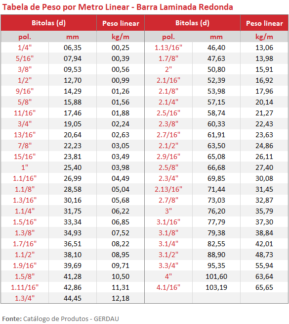 A barra com seção transversal circular com grande variedade de bitolas garante a qualidade do produto final, além de facilitar na hora de fazer encaixes e ajustes. Empregada principalmente em grades e portões, na fabricação de eixos e ferramentas, máquinas, forjamento, trefilação, etc.
