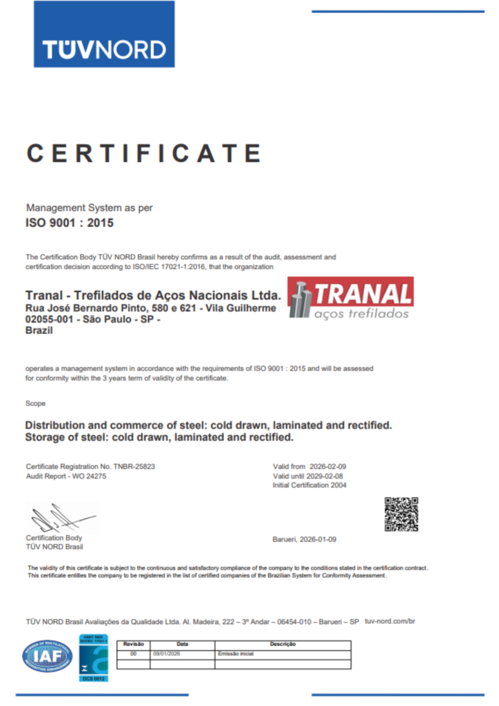 Obtenha o nosso certificado ISO 9001:2015 e conheça a nossa política da qualidade.